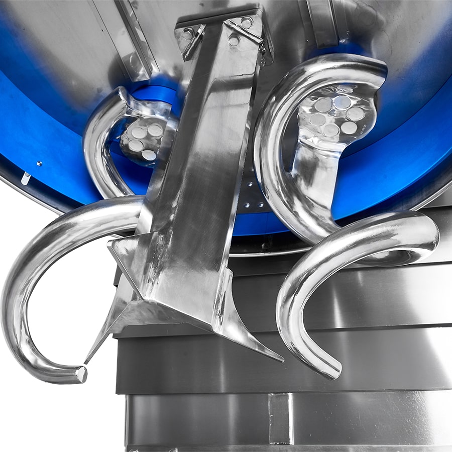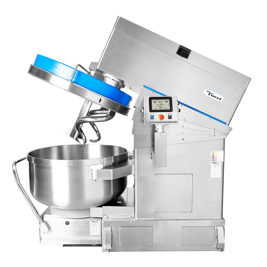 The removable bowl can be easily replaced thanks to the automatic locking, thus reducing production downtimes. The temperature control function prevents the dough from overheating, by suspending the working cycle until the temperature goes below the set value. Equipped with an intuitive 7” touch screen control panel that can store 300 programs with up to 20 working steps each.